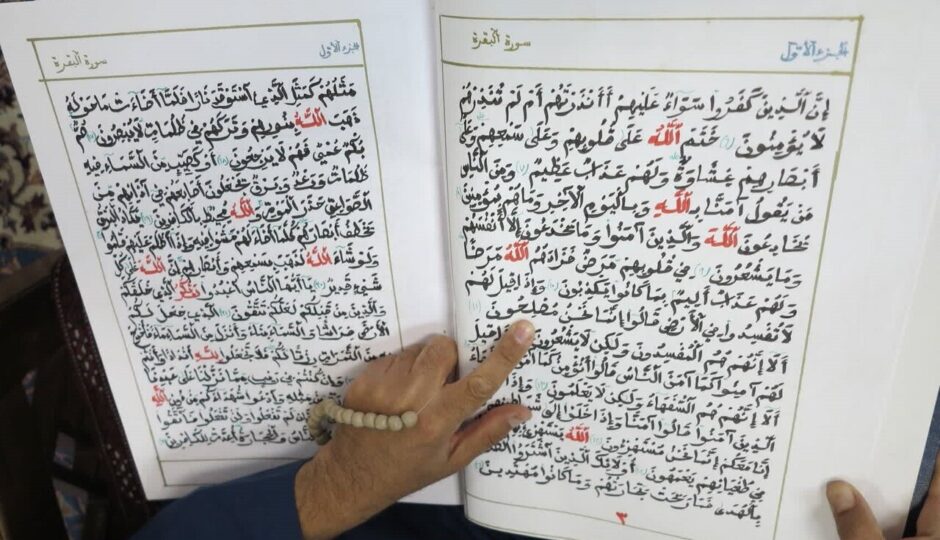این بانوی تونسی این قرآن شریف را با توجه به نذر و ارادت قلبی که به حضرت رضا (ع) داشته با همراهی پدرش که از خوشنویسان بنام تونس است، کتابت کرده و آن را از طریق رایزن فرهنگی تونس در ایران ارسال کرده است.