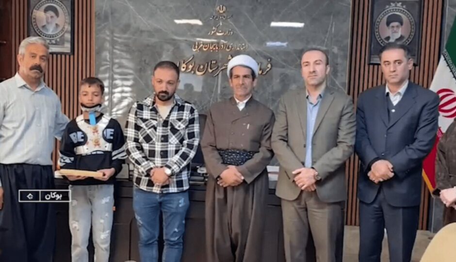 با وساطت امام جمعه و فرمانده سپاه بوکان، ناظم و دانشآموز بوکانی با یکدیگر آشتی کردند. آثار تنبیه بدنی این دانشآموز بوکانی از سوی ناظم همچنان باقی مانده و دانشآموز با گردنبند طبی در این مراسم حضور یافته است.