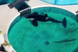 نهنگ قاتلی که در استخری کوچک نگهداری میشود/ عکس